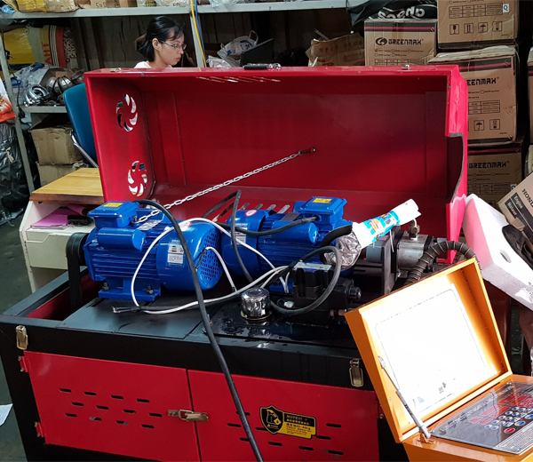 Bước 1: Đặt máy tại khu vực bằng phẳng, khô ráo và đủ thông thoáng để đảm bảo an toàn trong quá trình vận hành, sau đó kết nối máy với nguồn điện 220V ổn định để chuẩn bị sử dụng